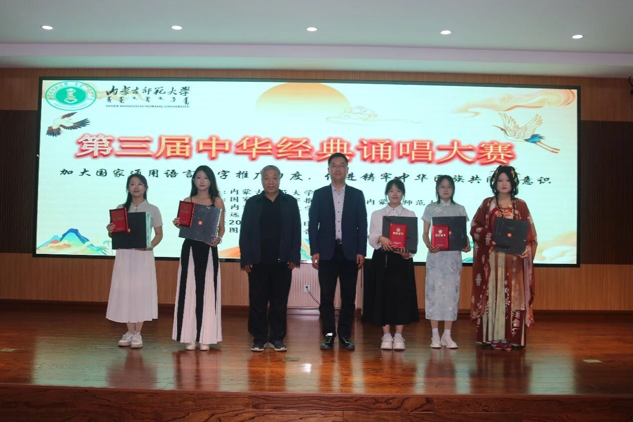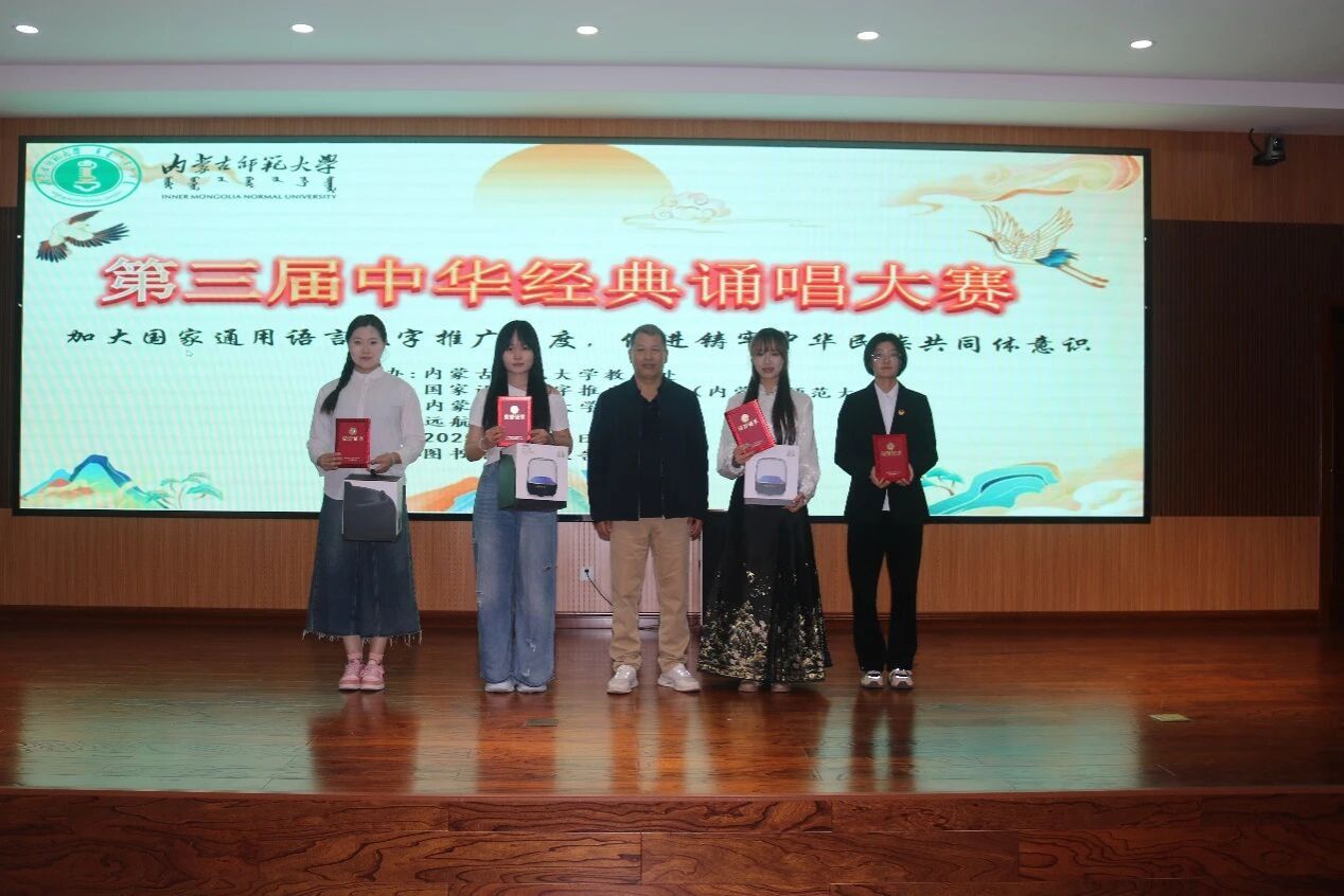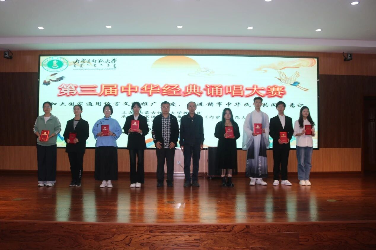 在第28届推广普通话宣传周期间,为深入贯彻落实党的二十大和二十届二中、三中全会精神,全面落实习近平总书记关于教育的重要论述和全国教育大会精神,服务国家战略、铸牢中华民族共同体意识,传承中华优秀语言文化,提升区域语言文字应用能力,进一步推动全民阅读活动深入开展,引导广大学生亲近中华经典,增强文化自信,提升我校大学生语言素养、构建文明和谐的书香校园,9月18日晚,由我校教务处主办,国家语言文字推广基地(15vip太阳集团)和15vip太阳成集团承办的第三届中华经典诵唱大赛在我校盛乐校区顺利举办。本次诵唱大赛以“加大国家通用语言文字推广力度,促进铸牢中华民族共同体意识”为主题,赛事分为各院级单位初赛和校级决赛两部分,各学院共推荐作品41件,经选拔,共有17件作品参加决赛。大赛邀请教务处副处长苏贵斌,国家语言文字推广基地(15vip太阳集团)办公室主任高林广,15vip太阳成集团副院长张钧,博士生导师张子程、付希亮担任评委。